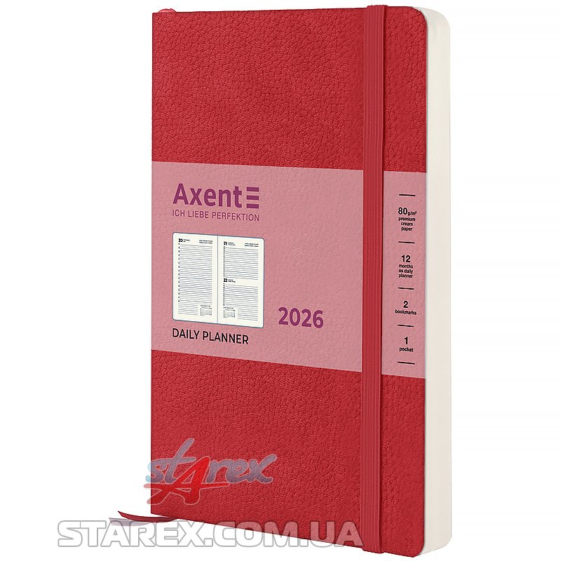 Щоденник 2026 Axent Partner Soft Skin 145x210мм, червоний