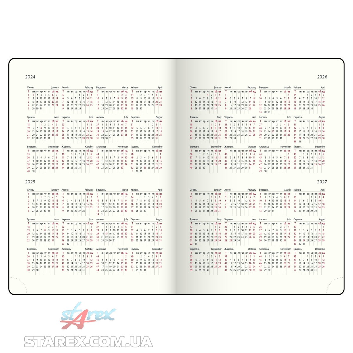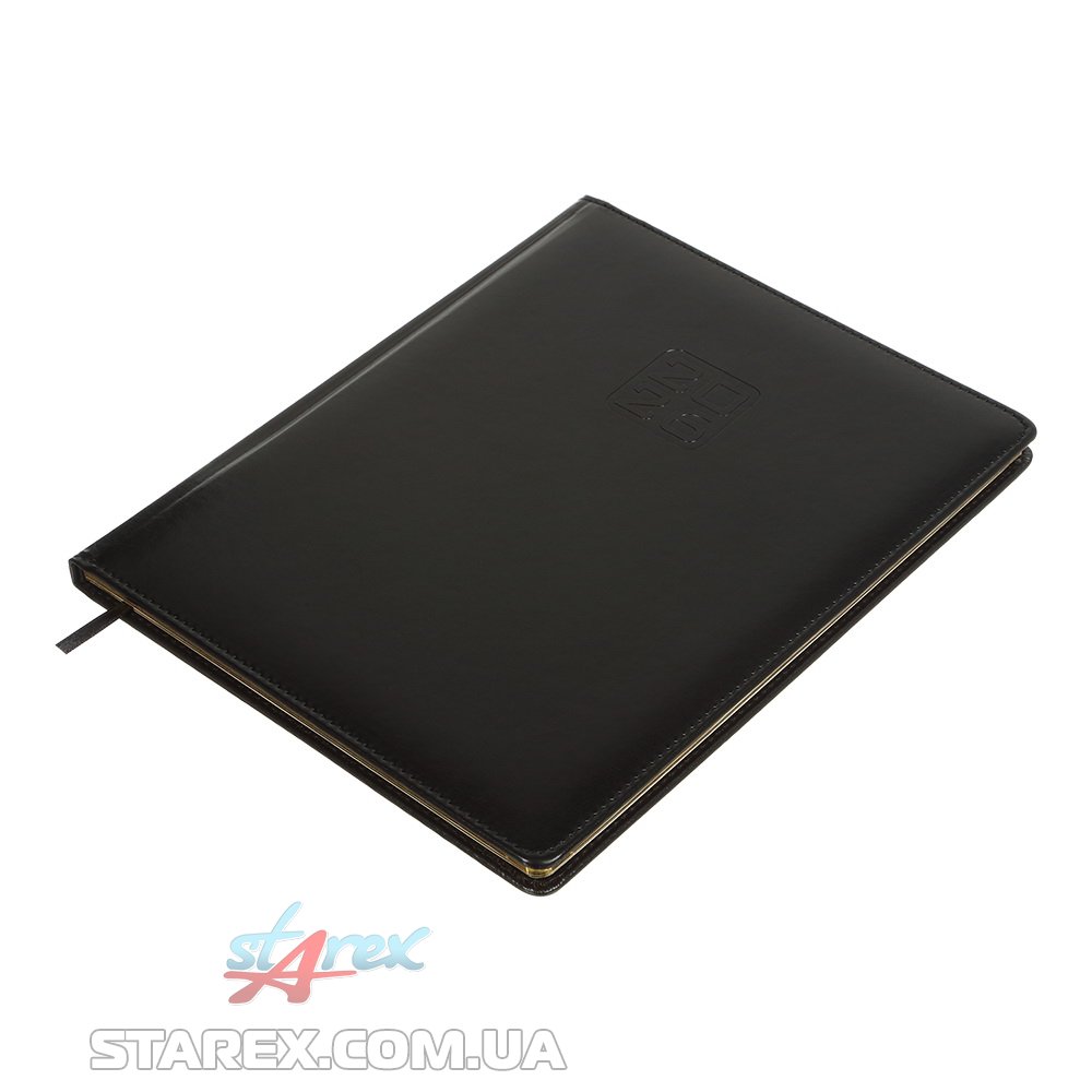 Жорстка обкладинка щотижневика BRAVO виготовлена з гладкої штучної шкіри, з поролоном. На лицьовій стороні - тиснення року сліпим методом. Тонування зрізу золотом додає вишуканий акцент. Класичний та стриманий дизайн стане відмінним доповненням корпоративного стилю компанії. Великий формат дозволяє не тільки планувати, але й робити змістовні нотатки та записи.