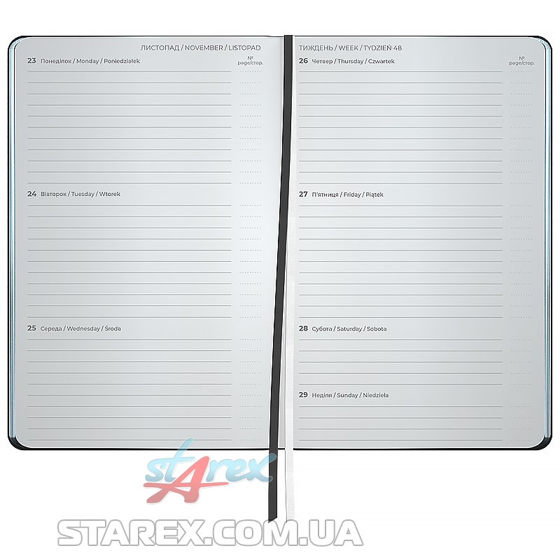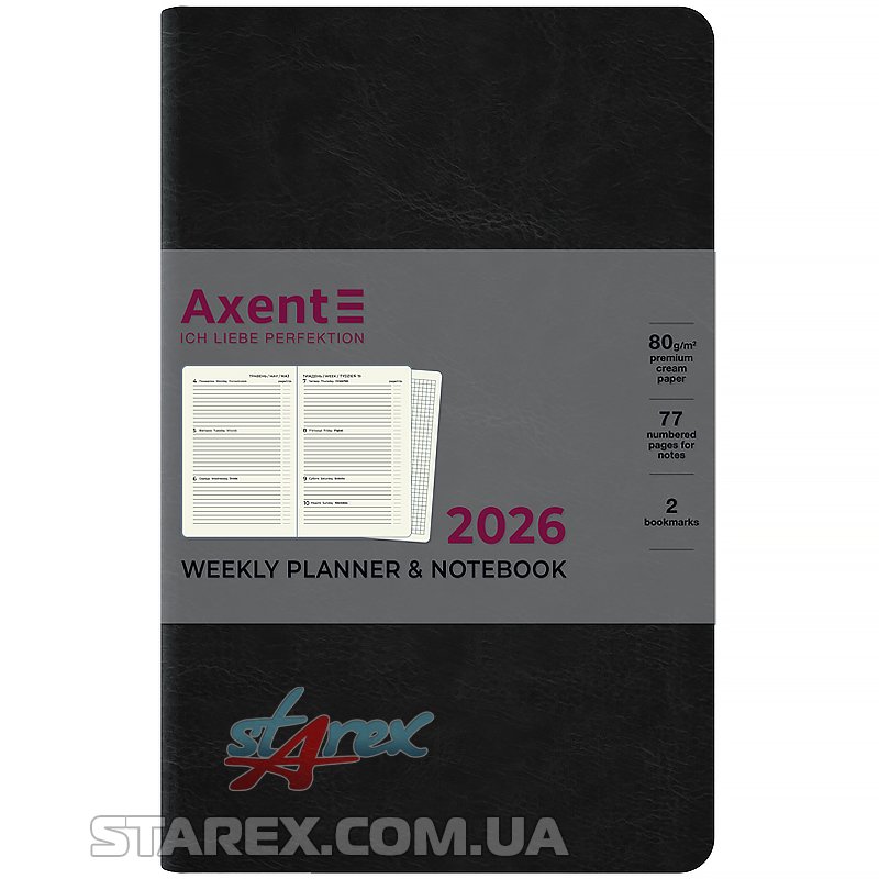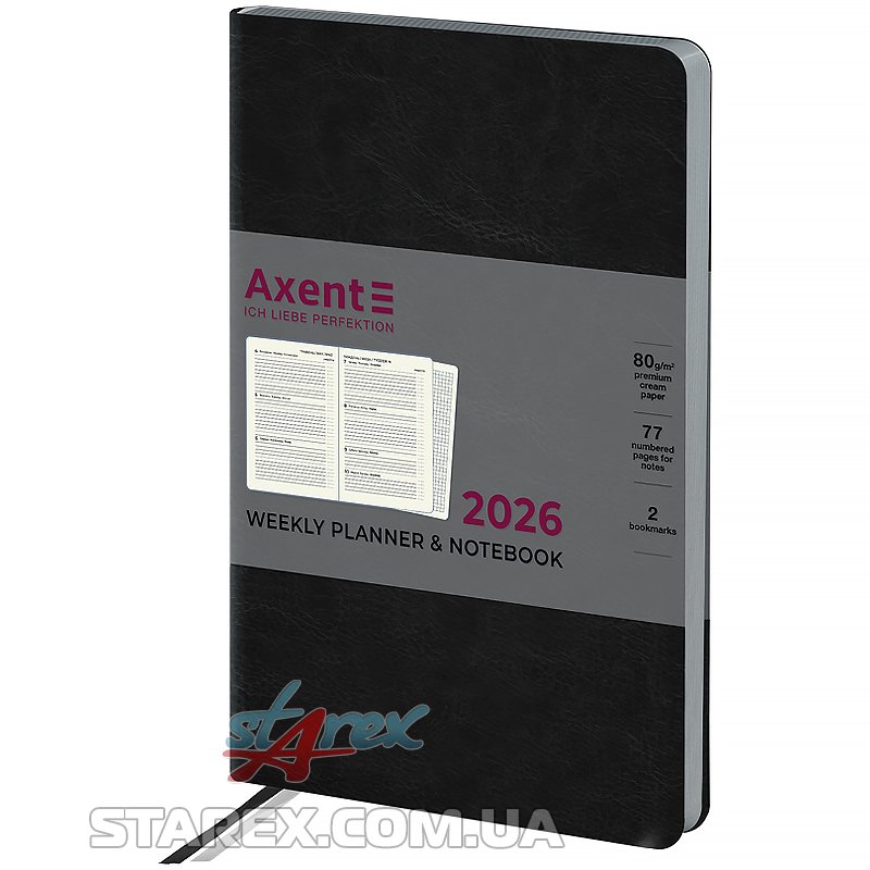 Щотижневик Axent із серії Partner City з м'якою обкладинкою та срібним зрізом. Використовується для щоденних записів, а також ділових та творчих задач.