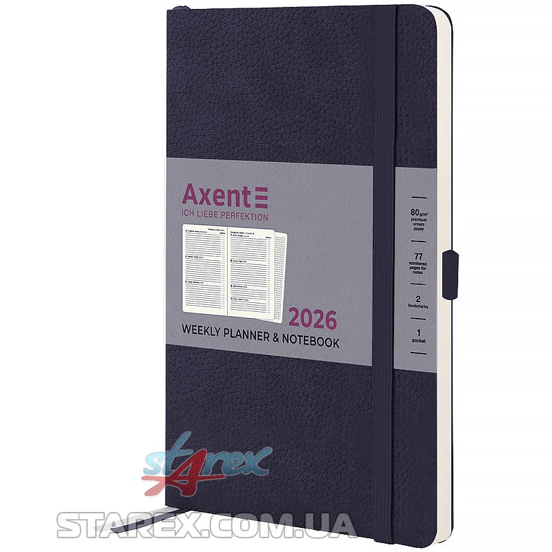 Щотижневик Axent із серії Soft Skin в м'якій, еластичній обкладинці з текстурою під шкіру. Використовується для щоденних записів, а також ділових та творчих задач.