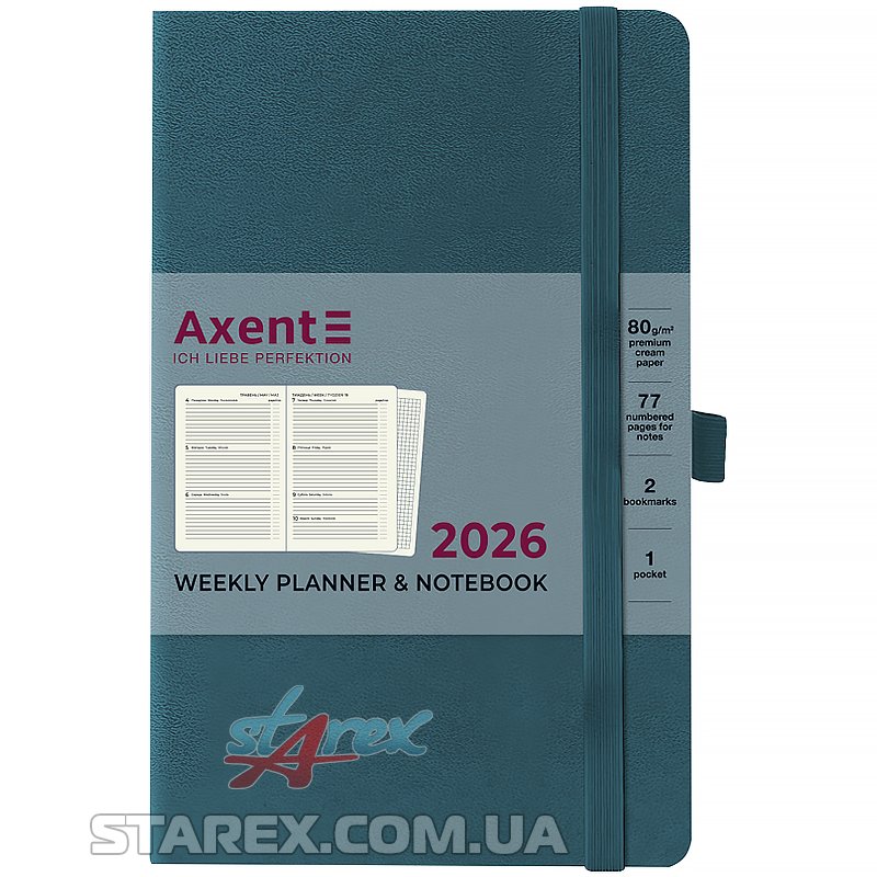 Щотижневик 2026 Axent Partner Strong 125x195мм, лазурний