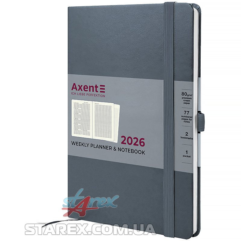 Щотижневик Axent із серії Prime Strong в твердій обкладинці. Використовується для щоденних записів, а також ділових та творчих задач.