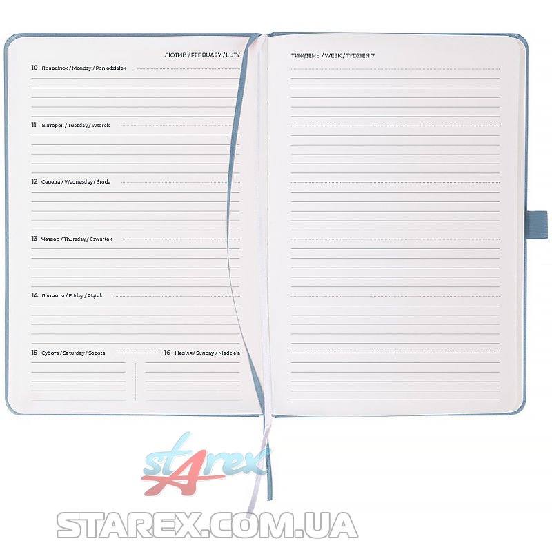 - Щотижневик поділений на 2 частини – датований блок у лінію для зручного планування справ і додаткові сторінки у клітинку для ведення особистих записів