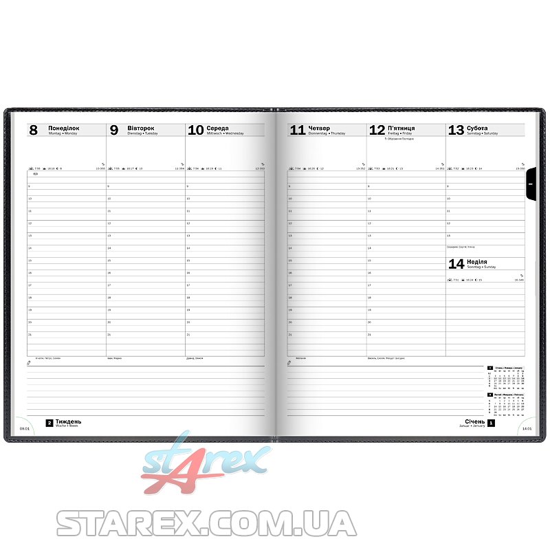 Створений для тих, кому необхідно відразу розпланувати важливі справи на весь тиждень (тиждень на розвороті)