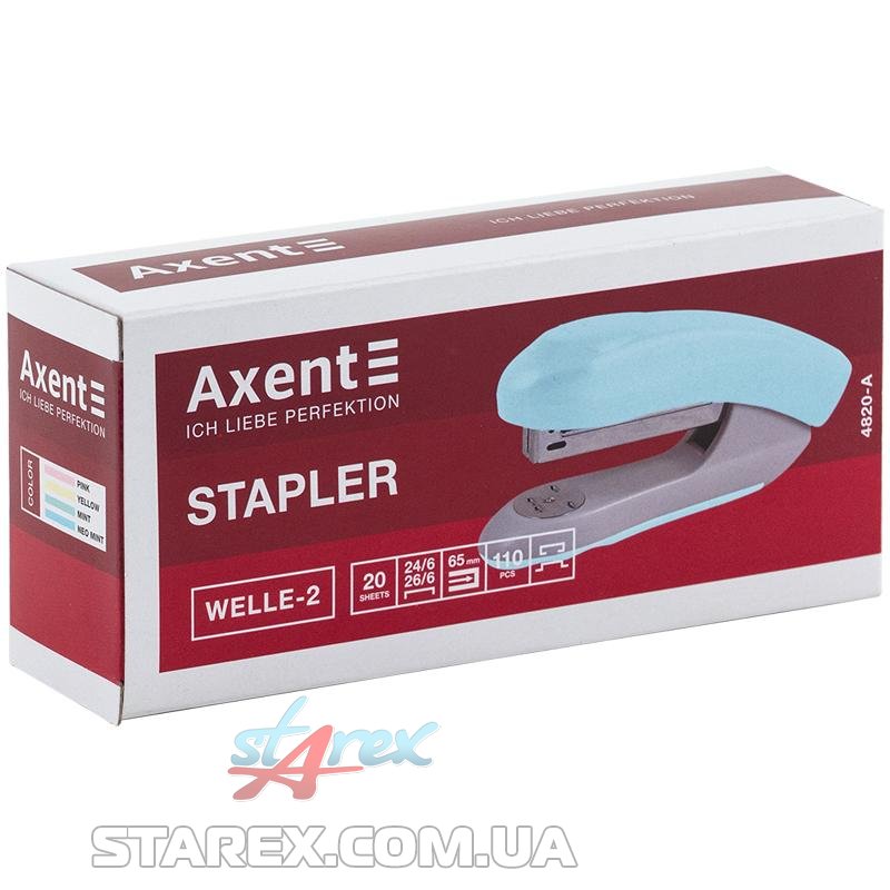 Степлер Axent Welle-2 4820 Pastelini з металевим механізмом, корпус – з якісного міцного ABS-пластику. Ергономічний дизайн підвищує зручність в роботі. Можливість зміни способу скріплення з закритого на відкритий – натисненням кнопки на підошві степлера. Віконце контролю наявності скоби. Прогумована підошва.