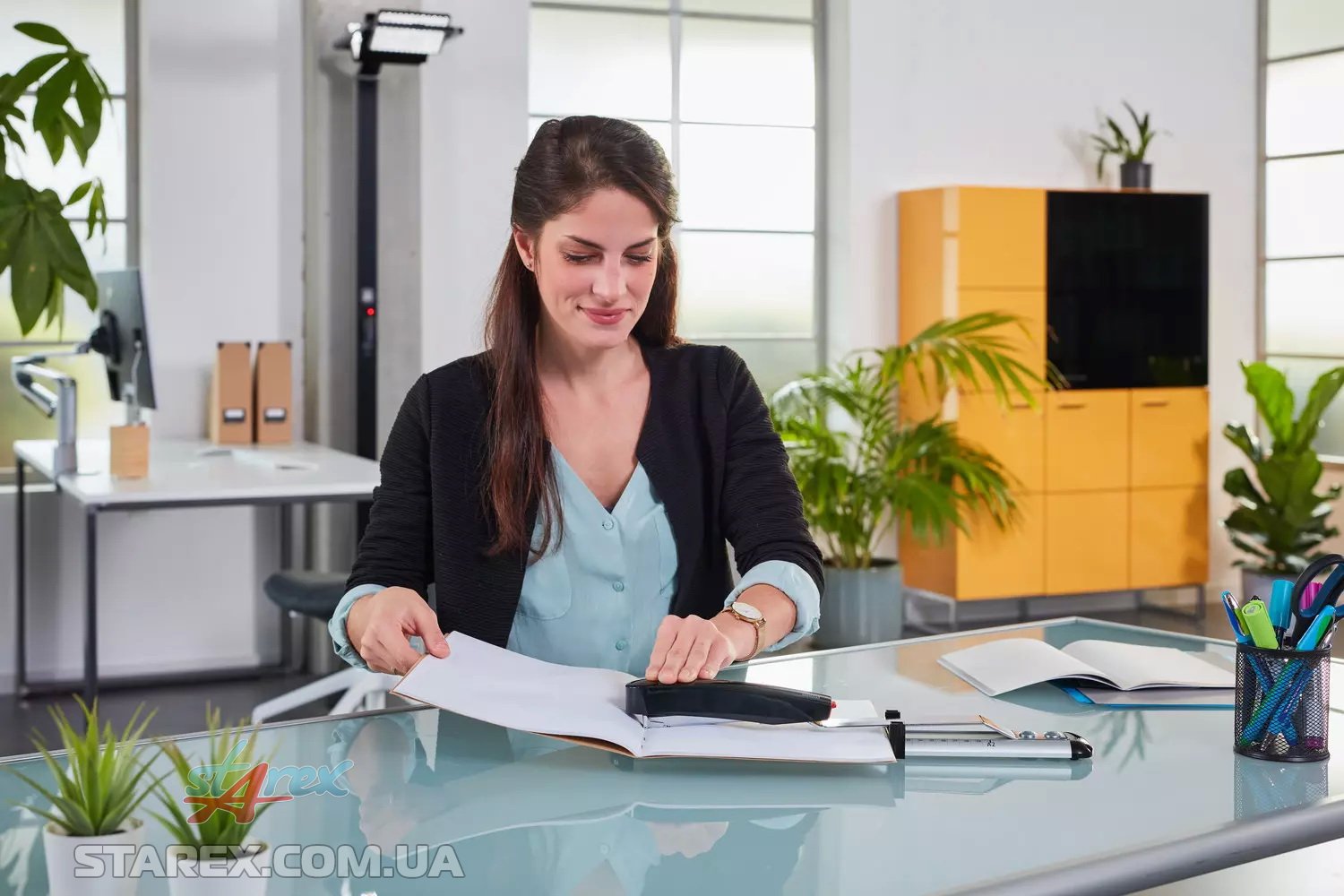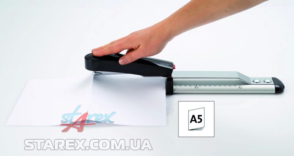 Автоматичний завантажувальний механізм з подвійною пружинною направляючою скоб для точного зшивання. Реверсивна матриця для відкритого і закритого зшивання. Зручне зшивання брошур формату DIN A6 - DIN A2. Стійка і нековзна срібляста ніжка-опора з анодованого алюмінію. Вага: близько 800 г. Максимальна кількість аркушів — 40. Глибина завантаження — 300 мм.