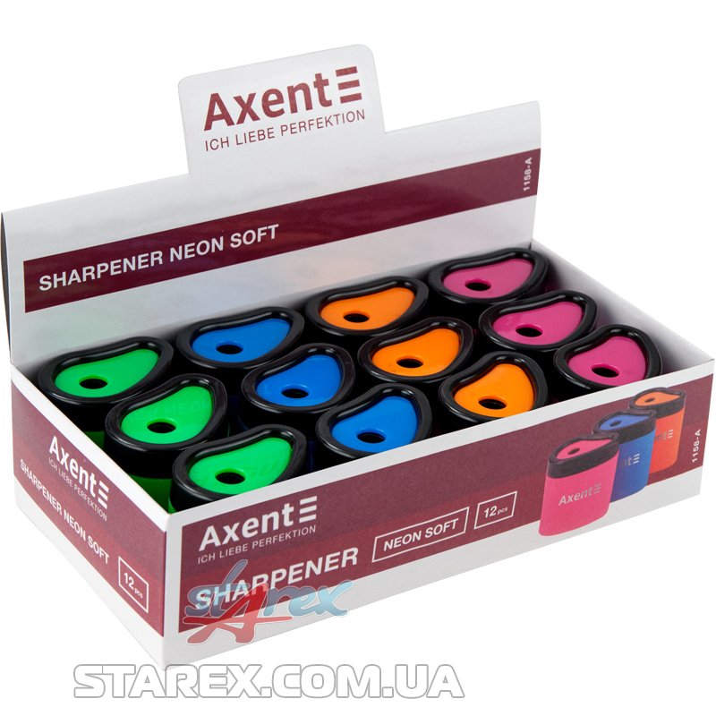 - Пластикова точилка з контейнером стильної, ергономічної форми Axent Neon soft