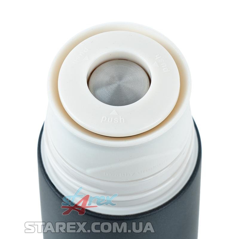 Термос має надійний клапан: щоб налити напій, достатньо одного натискання — не потрібно відкручувати повністю. Така система зручна, гігієнічна й запобігає проливанню.