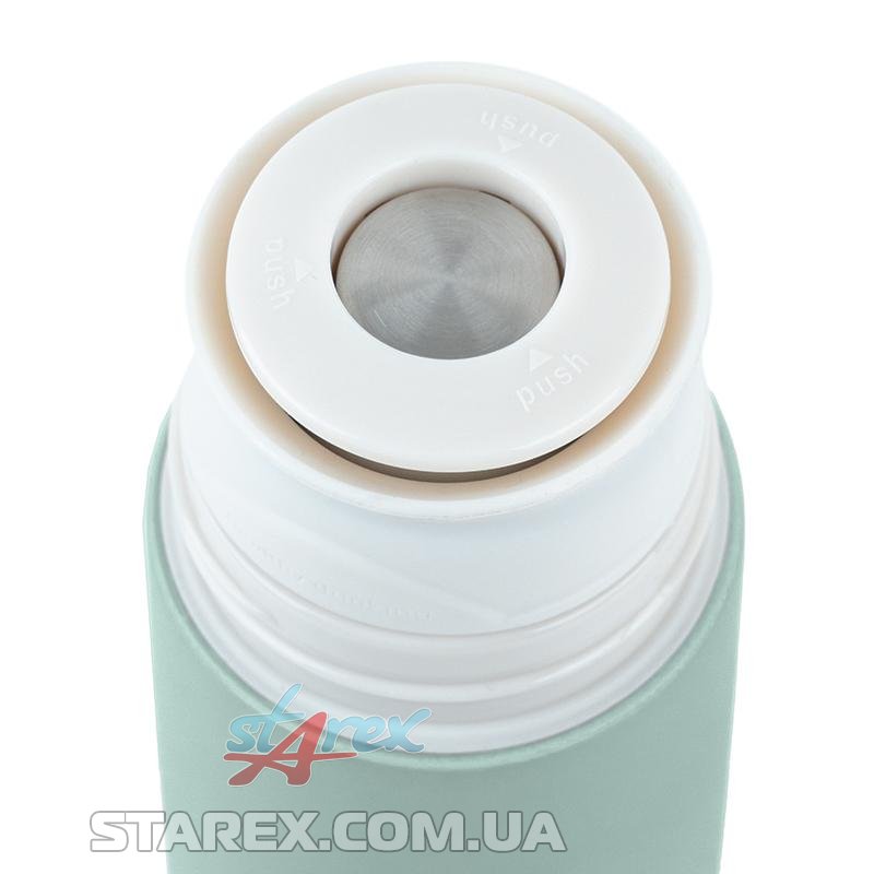 Термос має надійний клапан: щоб налити напій, достатньо одного натискання — не потрібно відкручувати повністю. Така система зручна, гігієнічна й запобігає проливанню.