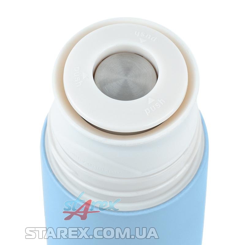 Термос має надійний клапан: щоб налити напій, достатньо одного натискання — не потрібно відкручувати повністю. Така система зручна, гігієнічна й запобігає проливанню.