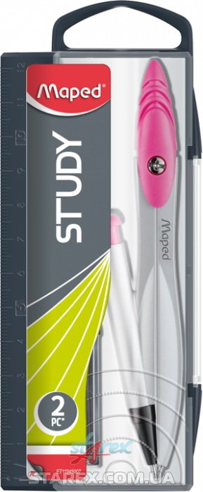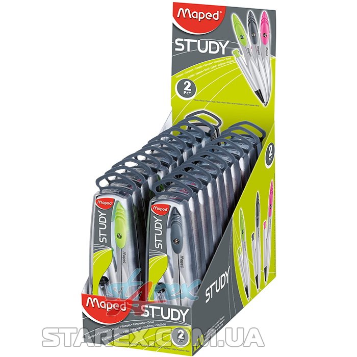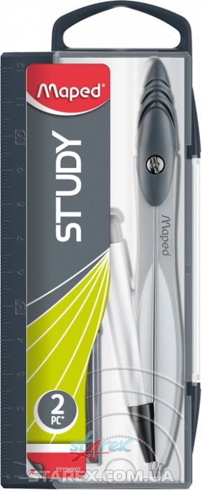 Циркуль металевий STUDY, з механічним олівцем+набір грифелів (10шт)