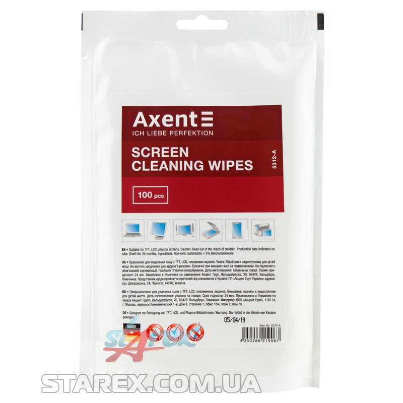 Серветки по догляду за екранами Axent ефективно і дбайливо очищають поверхню TFT / LCD екранів ноутбуків, моніторів, телевізорів, телефонів, планшетів і т.д. Відповідають вимогам міжнародних стандартів